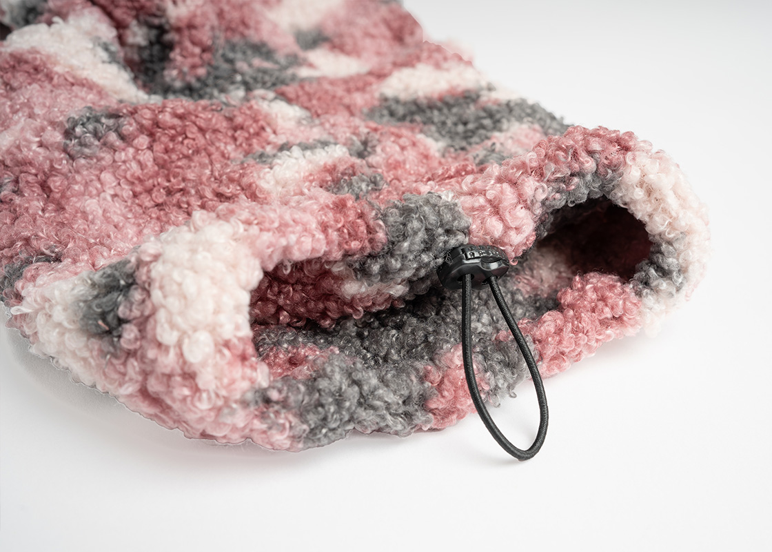 Fabric Minky Mouton is extremely soft and delicate. The fabric stretches in both directions. Made of polyester fibers, it is characterized above all by very good thermal insulation, it is also hydrophobic. The material is one-sided – the texture resembles mouton fleece from the top, and is smooth from the bottom. Very pleasant to the touch.